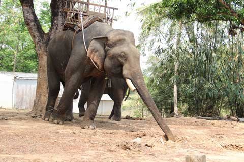 | Ngoài giờ cõng khách du lịch, voi bị xích chân không còn thời gian chơi và “yêu đương” theo quy luật. |