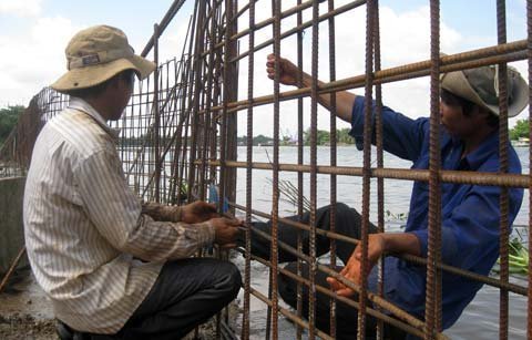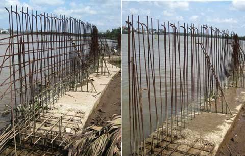 đổ bê tông phần chân bờ kè nhô lên thì không thấy thay thế!?