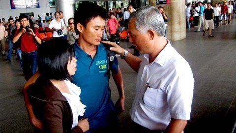 | Ông Lê Minh, Phó tổng giám đốc công ty cổ phần Vận tải biển Sài Gòn ra đón thủy thủ trở về |