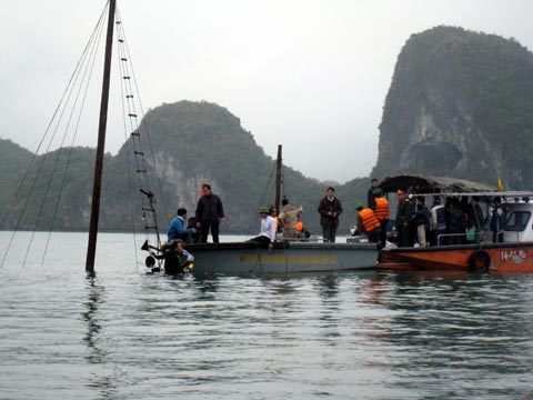 | Các thợ lặn tìm kiếm nạn nhân - Ảnh: báo Quảng Ninh |