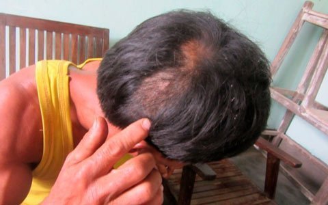 | Ông Cậy bị cẩu tặc chém vào đầu, vào tay vừa trở về từ bệnh viện. |