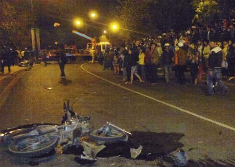 | Vụ tai nạn làm 3 chiếc xe máy hư hỏng nặng |