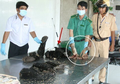 Tại đây, qua kiểm tra có 27,8kg động vật hoang dã quí hiếm gồm: 2 con gấu con, 2 con hổ con (đã chết) và 8 tay gấu.