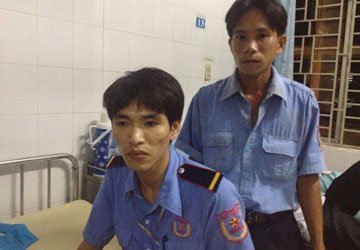 | Bảo vệ Trần Đình Phúc bị đánh chấn thương đầu khi ngăn cản vụ “cướp” xác. Ảnh: DĐ |