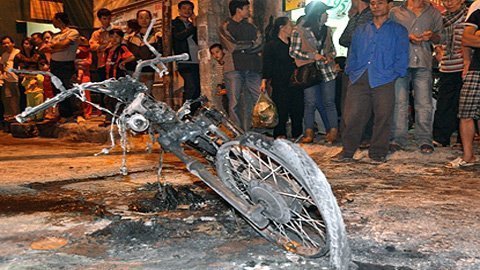 nhẹ, được người dân đưa đến bệnh viện cấp cứu vì xăng bắn tung tóe vào người.