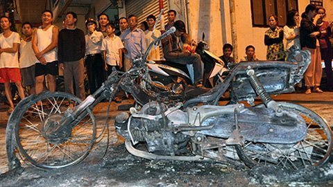 Ngay lập tức, ngọn lửa bùng lên khiến chiếc xe bị thiêu rụi hoàn toàn.