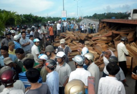 Ông Lê Văn Long, một người lái xe ôm dưới chân cầu chứng kiến sự việc cho biết: Hàng chụ m3 gỗ như gỗ hương, gỗ trắc…rơi xuống, một số người lợi dụng định cướp gỗ nhưng cơ quan chức năng đã kịp thời ngăn chặn.