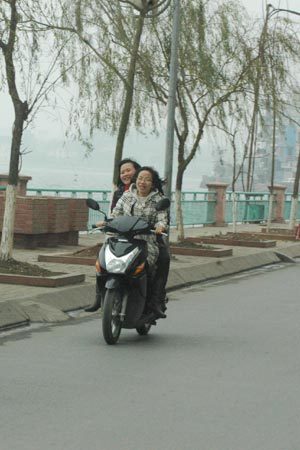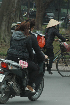 ![]() Thoải mái nghe ca nhạc với đầu không mũ bảo hiểm. ![]() Đôi bạn trẻ đèo nhau, trò chuyện rôm rả trên đường ven Hồ Tây. ![]() |