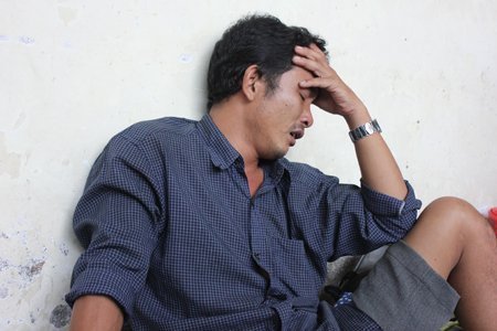 | Vẻ mặt thất thần của anh Lê Văn Vũ khi nghe tin con trai của mình trong tình trạng nguy kịch. |
