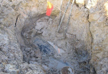 Đầu tên lửa nằm ở độ sâu 2m dưới lòng đất (Ảnh: Pháp luật XH)