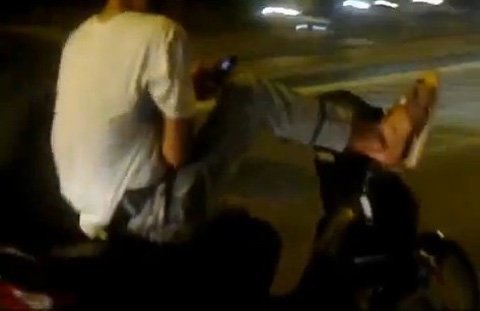 Trước đó vào đầu tháng 11, cộng đồng mạng cũng từng xôn xao với clip thanh niên lái xe bằng chân, vác thanh sắt dài ngang nhiên đi trên đường.