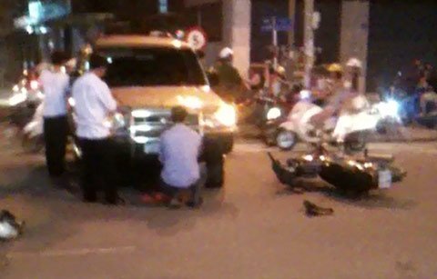 | Hiện trường vụ TNGT, tài xế ôtô biển xanh bịt biển số - (Ảnh chụp từ video clip). |