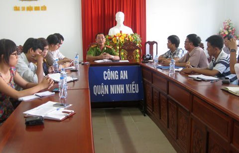 | Công an quận Ninh Kiều, TP. Cần Thơ làm việc với báo chí - Ảnh: Quốc Huy |