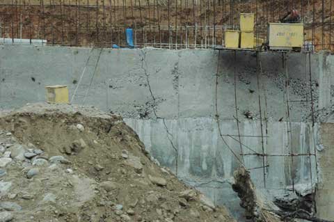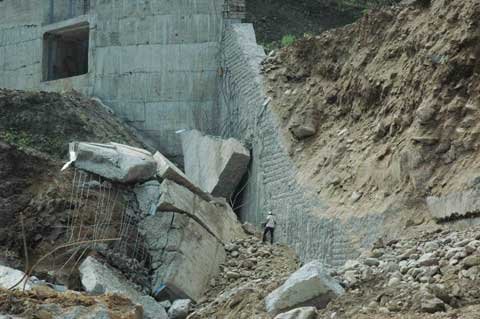 | Bờ tường tràn xã lũ cũng đã bị rạn nứt |