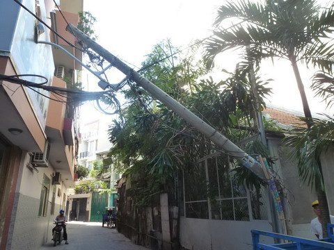 ![]() Kéo bó cáp làm đổ trụ điện ![]() |