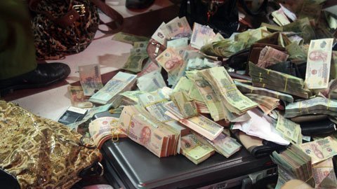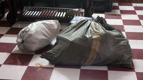 Cảnh sát thu giữ 2 bao tải đựng tang vật gồm tiền, quân vị, điện thoại, ví, bát đĩa, máy tính... đa số tiền là tiền mệnh giá 100 nghìn, 200 nghìn và 500 nghìn đồng.