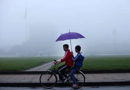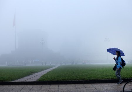 | Sáng nay sương mù phủ kín bầu trời Hà Nội. |
