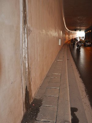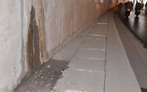 | Được đưa vào sử dụng khoảng 3 năm nay hầm Kim Liên đang xuất hiện nhiều vết nứt. |