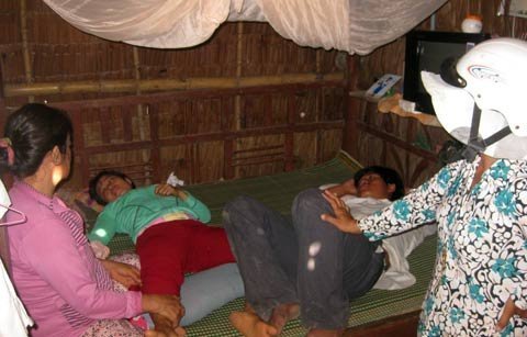 | Vợ chồng anh Lê Minh Hải và chị Trần Thị Thúy Hằng ngất lịm trên giường. |