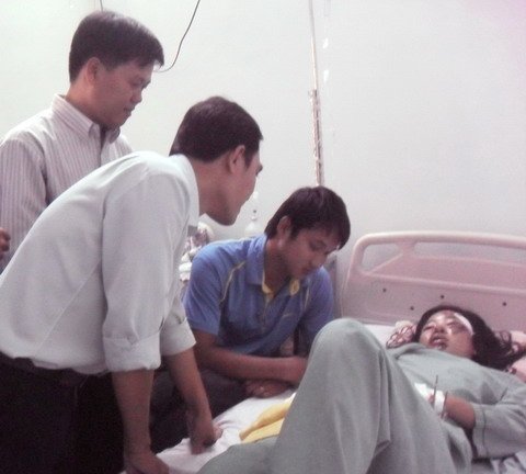 | Các giáo viên trường Phạm Văn Sáng thăm hỏi Ngân tại bệnh viện |