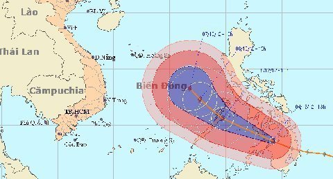 Đến 13 giờ ngày 5/12, vị trí tâm bão ở vào khoảng