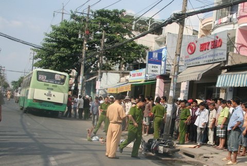 đường, văng vào gầm xe. Xe buýt cán ngang qua đầu, khiến nạn nhân chết liền tại