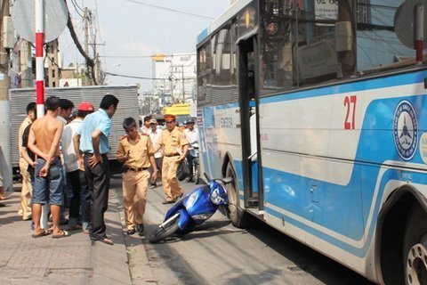 Q. Tân Bình TP.HCM) xe buýt này va chạm với xe máy, khiến anh Hưng ngã xuống