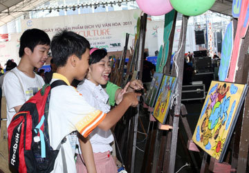 | Hoạt động vui chơi ngoài trời sẽ khơi dậy những hứng thú mới đối với trẻ em. Trong ảnh: Trẻ đang tham dự một hoạt động vẽ tranh vì môi trường. Ảnh minh họa: TTN |