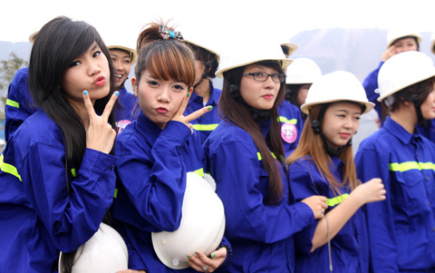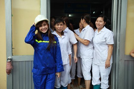 20 thí sinh Miss teen đã có những giây phút trải nghiệm đởi sống công nhân mỏ than đáng nhớ khi tới thăm công ty than Hà Lầm vào 7/11.