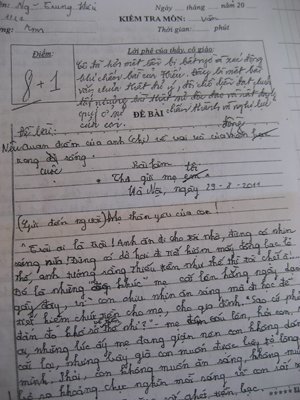 Bài văn xúc động của Hiếu (Ảnh: VNN) |