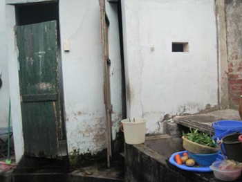 Dù mỗi tháng vẫn phải đóng tiền phí vệ sinh cho chủ trọ nhưng sinh viên phải dùng nhà vệ sinh "nửa kín nửa hở" này |