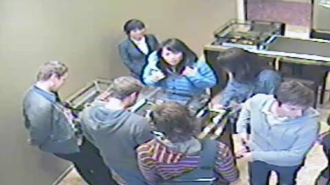 Zuckerberg mặc áo nỉ có mũ màu rêu (người thứ hai từ trái sang) nói rất ít khi tham quan cửa hàng Vertu nhưng anh vẫn rất thân thiện.