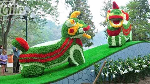 | Đại sứ quán Hà Lan năm nay tặng hơn 4.000 chậu hoa ly để trang trí cho hai chú lân này đấy |