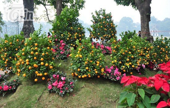 | Bước sang không gian triển lãm, các teen có thể thỏa sức ngắm sắc xuân trên những cây quất, cành đào |