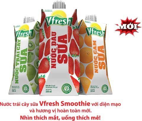 Bạn cũng có thể bổ sung vào thói quen thưởng thức đồ uống một loại sản phẩm mới: Smoothie trái cây sữa. Nước trái cây sữa Vfresh Smoothie kết hợp các loại quả tươi ngon với sữa tươi bổ dưỡng cho bạn thật nhiều năng lượng để tiếp sức cho các hoạt động trong ngày. Vfresh Smoothie được thiết kế độc đáo và cá tính, như dành riêng cho những bạn trẻ mang phong cách trẻ trung năng động. Smoothie Cam Sữa, Smoothie Dâu Sữa và Smoothie Trái Cây Sữa kết hợp 5 loại quả màu xanh (dưa lưới, kiwi, táo, lê, ổi) là sự lựa chọn tuyệt vời cho một món thức uống “nhìn thích mắt, uống thích mê”.