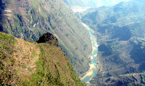 Dòng Nho Quế uốn lượn quanh các vách núi dựng đứng của đèo Mã Pí Lèng |