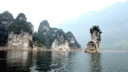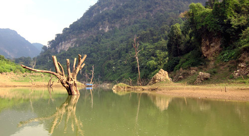 Tàu chở khách cứ thế lướt nhẹ giữa hai bờ là núi đã vôi ẩn hiện. Lấp ló đâu đó vài chiếc thuyền buông lưới. Một vài gốc cây khô trơ trọi đột ngột hiện trên mặt nước như tiếc nuối cái thuở còn là nguyên sinh, nay đã bị sông vùi lấp. Một đàn trâu thơ thẩn gặp cỏ ven sông... Trong khung cảnh thơ mộng ấy, muộn phiền của cuộc sống thường nhật tan biến.