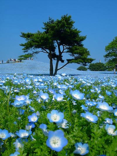 Hàng năm, tại công viên Hitachi, đảo Honshu, Nhật Bản đều tổ chức lễ hội Ngắm hoa Nemophila. 4,5 triệu cây hoa Nemophila cùng nở xanh khắp các triền đồi khiến người ta có cảm giác như cả bầu trời đã được đặt xuống mặt đất.