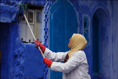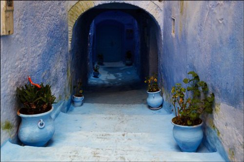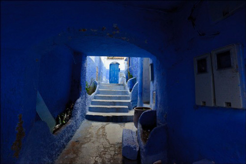 Một trong những địa điểm hút khách nhất ở Ma-rốc là Chefchaouen, một ngôi làng mà những ngôi nhà và các vật dụng trang trí trên đường phố đều có màu xanh rất đẹp.