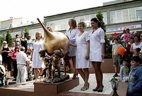Một spa sức khỏe ở Nga mở cửa vào tháng 6/2008 đã cho khai trương một bức tượng có chủ đề… thông thụt. Đây là trung tâm chăm sóc sức khỏe chuyên điều trị các bệnh liên quan đến bộ máy tiêu hóa!