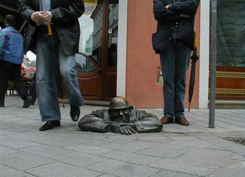 Bratislava, Slovakia. Người ta tin rằng chạm tay vào mũi tượng này sẽ gặp