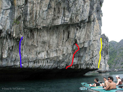 Tại đây có trên 6 tuyến leo, mực nước đủ sâu để leo tự do. Khi thủy triều xuống thấp sẽ tương đối khó leo vì khi xuất phát sẽ phải nhảy khỏi thuyền để bám vào vách đá.