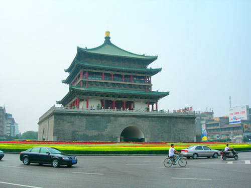 Nằm ở trung tâm thành Tây An, có lầu chuông 4 cổng hướng theo bốn con đường dẫn ra cổng thành Đông – Tây – Nam – Bắc.