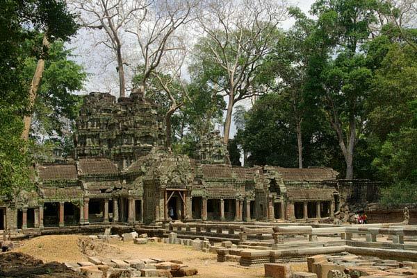 Ta Prohm nằm ở phía Đông và được xây từ đá như các ngôi đền khác trong quần thể Angkor.