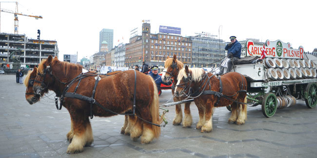 Rời ga tàu, Toby dẫn tôi đến ngay quảng trường Rahusplatsen giữa Copenhaghen để xem bốn con ngựa trông diện mạo thật kỳ lạ, lông lá nâu óng dày xộp, kéo cỗ xe chất đầy những thùng bia sáng choang thật hấp dẫn. Toby cho biết đây là giống ngựa đặc trưng của Đan Mạch, chịu lạnh và có sức kéo cực kỳ tốt, chuyên dùng vận chuyển bia đến khắp các quán bia mang phong cách truyền thống trong thành phố. Đây là một nét văn hoá thưởng thức bia tồn tại từ lâu lắm rồi, và ngày nào cũng diễn ra như thế. Sau vài cuốc xe lòng vòng quanh quảng trường để mọi người chiêm ngưỡng, những thùng bia lần lượt theo chân ngựa đi phục vụ sứ mệnh của nó, và tôi cũng theo chân những thùng bia ấy để đi tìm một không gian văn hoá thưởng bia thực sự kiểu Đan Mạch.