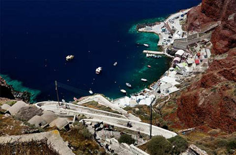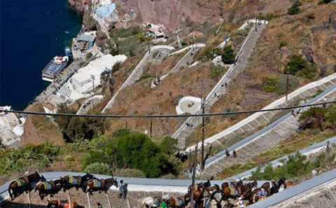 Có nhiều phương tiện đi lại trên đảo Santorini để du khách lựa chọn như thuê xe đạp, xe máy, đi xe buýt nhưng độc đáo nhất là thuê một chú lừa và thong dong khắp đảo.