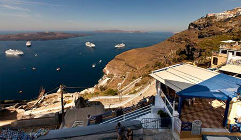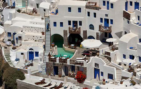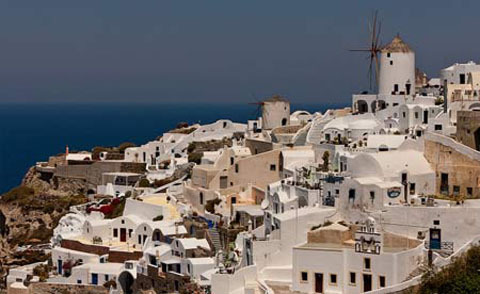 Cứ chiều đến, từng đoàn khách du lịch khắp các ngõ ngách trên đảo đều đổ về say sưa thưởng thức giây phút cuối ngày tuyệt đẹp khi mặt trời dần tắt nắng. Những ngôi nhà trắng như tuyết chuyển dần sang vàng nhạt, rồi nhuốm hồng và ngả hẳn sang tím trước khi thị trấn được chiếu sáng bởi những ánh điện đêm lung linh, huyền ảo.
