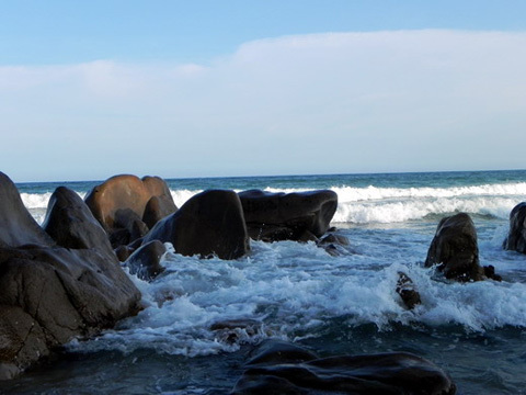 Ngoài tắm biển, du khách còn thích thú với những tảng đá to với nhiều hình dạng nằm co cụm thành nhóm gần bờ. Có tảng đá nhìn như con voi đang cong vòi phun nước, có tảng giống con đà điểu đang trầm mình thư giãn bên hồ nước sau một chuyến du hành, có tảng lại giống như bàn tay đang nắm lại, và chỉ về một nơi xa xăm trên biển.