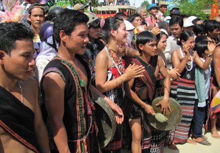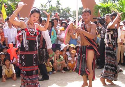 | Thiếu nữ Cơ-Tu xinh xắn hò reo lễ đâm trâu |
