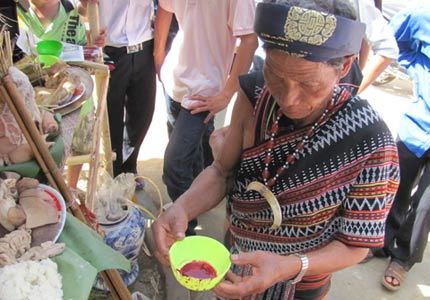 | Những giọt máu đầu tiên của trâu được dâng lên cúng thần linh |